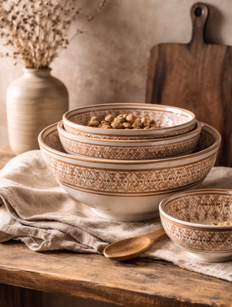 Upptäck vår handgjorda marockanska keramik. Vi erbjuder ett brett utbud i olika storlekar och färger. Alla våra artiklar finns i följande storlekar: