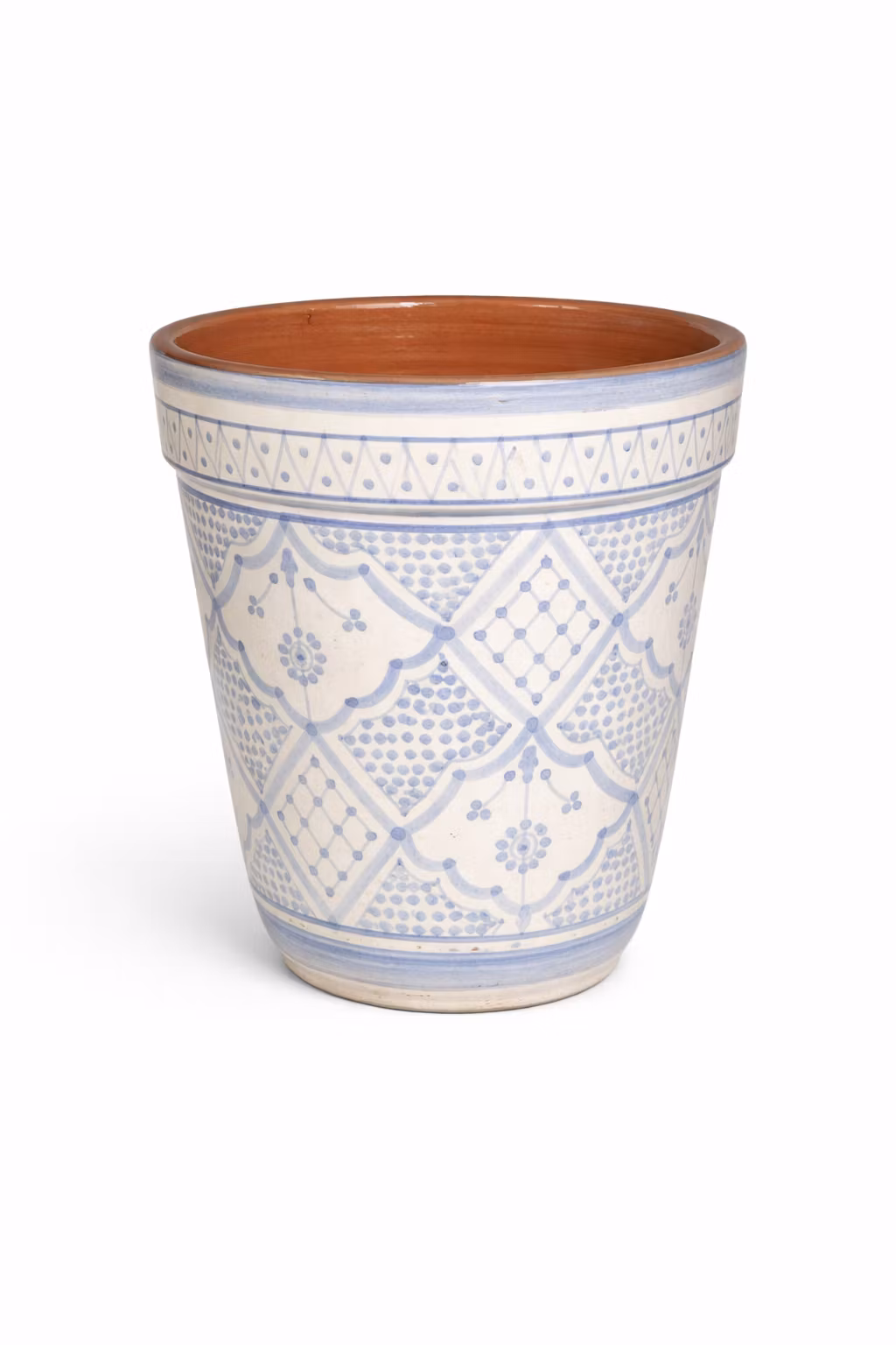 Vacker kruka , handmålad finns i storlek höjd 25 cm och 15 cm, Krukfat finns att köpa till för 30 kr st