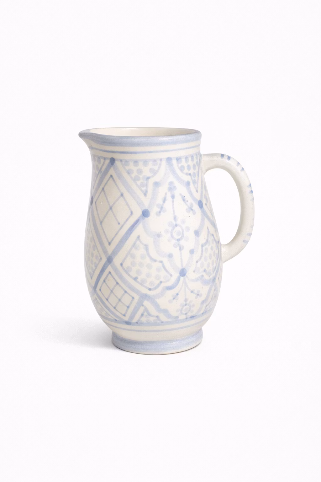 En vacker och funktionell kanna med klassiskt mönster. Varje exemplar är handgjort och handmålat, vilket gör varje kanna unik. Perfekt för vatten, juice eller som en dekorativ detalj på det dukade bordet.