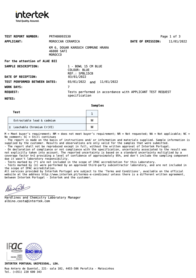 För slutkonsumenten är det nästintill omöjligt att se skillnad mellan blyhaltig och blyfri keramik. Därför är dokumentation avgörande. All vår keramik är testad av oberoende laboratorier inom EU, och testresultat kan visas upp vid behov.